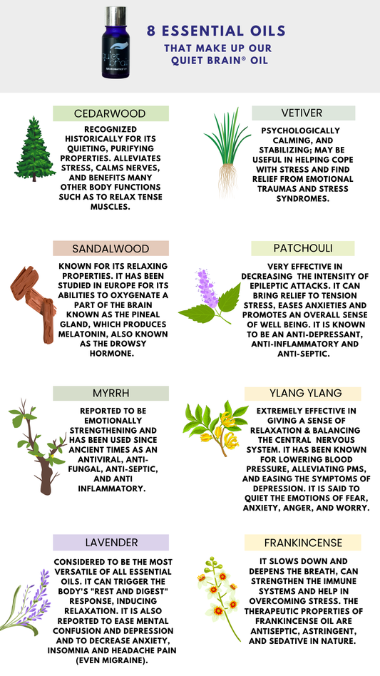 "After ONE NIGHT of [my son's] use of the Quiet Brain® blend he has already noticed some very positive changes. He slept the whole night for the first time in a long time. We are looking forward to even more positive feedback as the days go by. Thank you for such a blessed product, Laura!"
